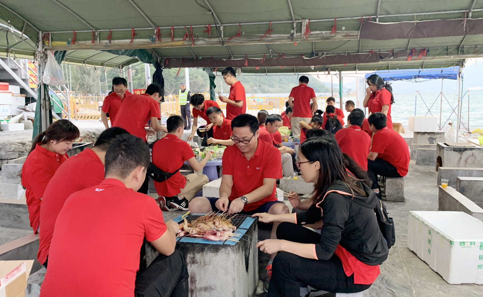 拓展訓練結束后已是晚上7時,我們驅車來到了楊梅坑海邊,公司精心的布置為今天的拓展活動帶來了另一番體驗-海邊燒烤,享受燒烤大餐。